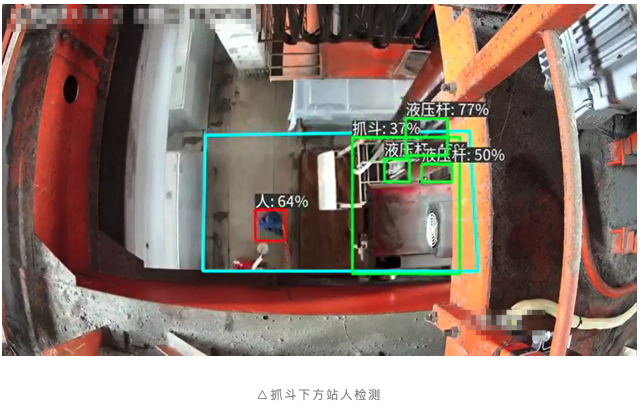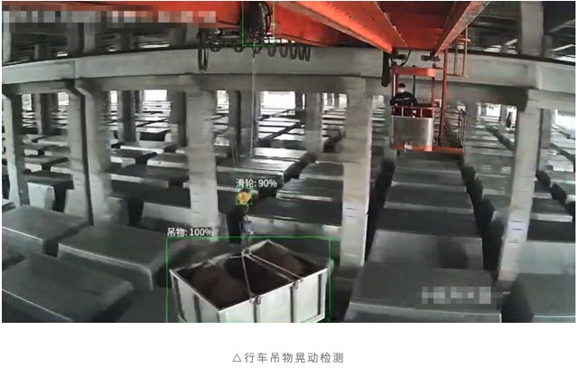 为有效应对酿酒车间行车作业中的安全风险,极视角创新开发了“行车吊物晃动检测”与“抓斗下方站人检测”智能算法。在酿酒车间的行车吊装作业过程中,该算法能够精准识别抓斗下方人员违规站立以及吊钩运行摆幅过大的安全隐患,并实时触发声光报警器,通过定制化语音提示实时反馈现场工作人员,从而打破传统人工巡检在及时性、准确性上的瓶颈,为酿酒生产作业进一步筑牢安全防线。